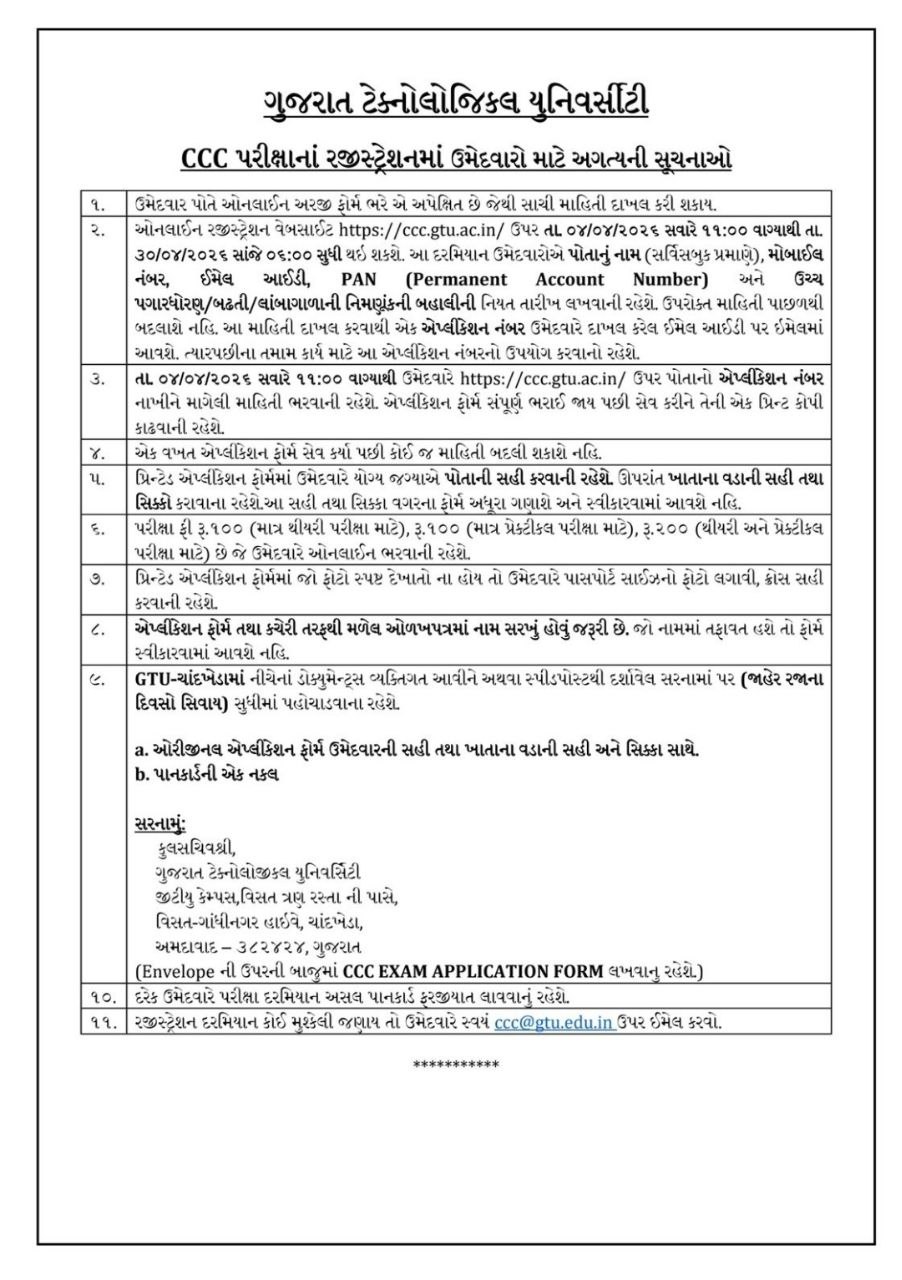 | GTU CCC Exam (Theory & Practical) | Open for 2026 Session |
