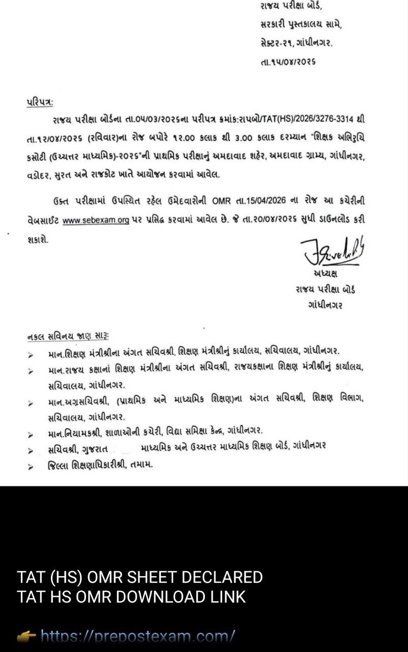 Candidates appearing for the TAT (HS) exam typically possess a Post-Graduate degree along with a B.Ed. or equivalent teaching qualification as per the norms set by the Gujarat Education Department. This OMR sheet release is specifically for those who met these qualifications and sat for the 2026 preliminary test.